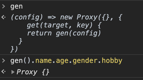 考虑到我们的返回应该是可无限链式调用的对象,那么很明显,除了对于一开始的对象我们需要劫持,对于后续我们返回的对象,也是需要劫持的,因此代码可以这样写: