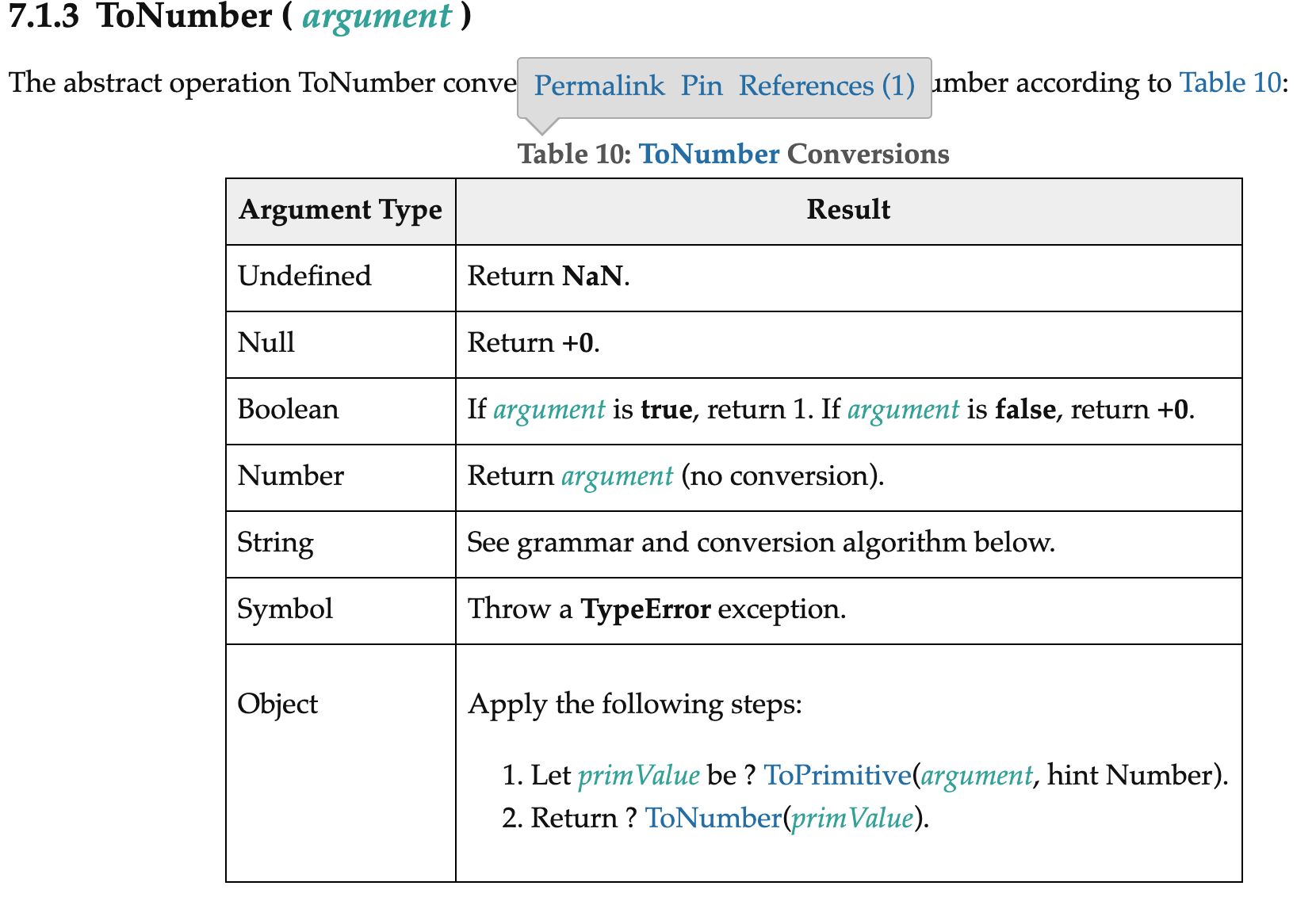 规范告诉我们,当我们调用Number()方法,并且传递了一个对象的时候,会执行以下步骤: